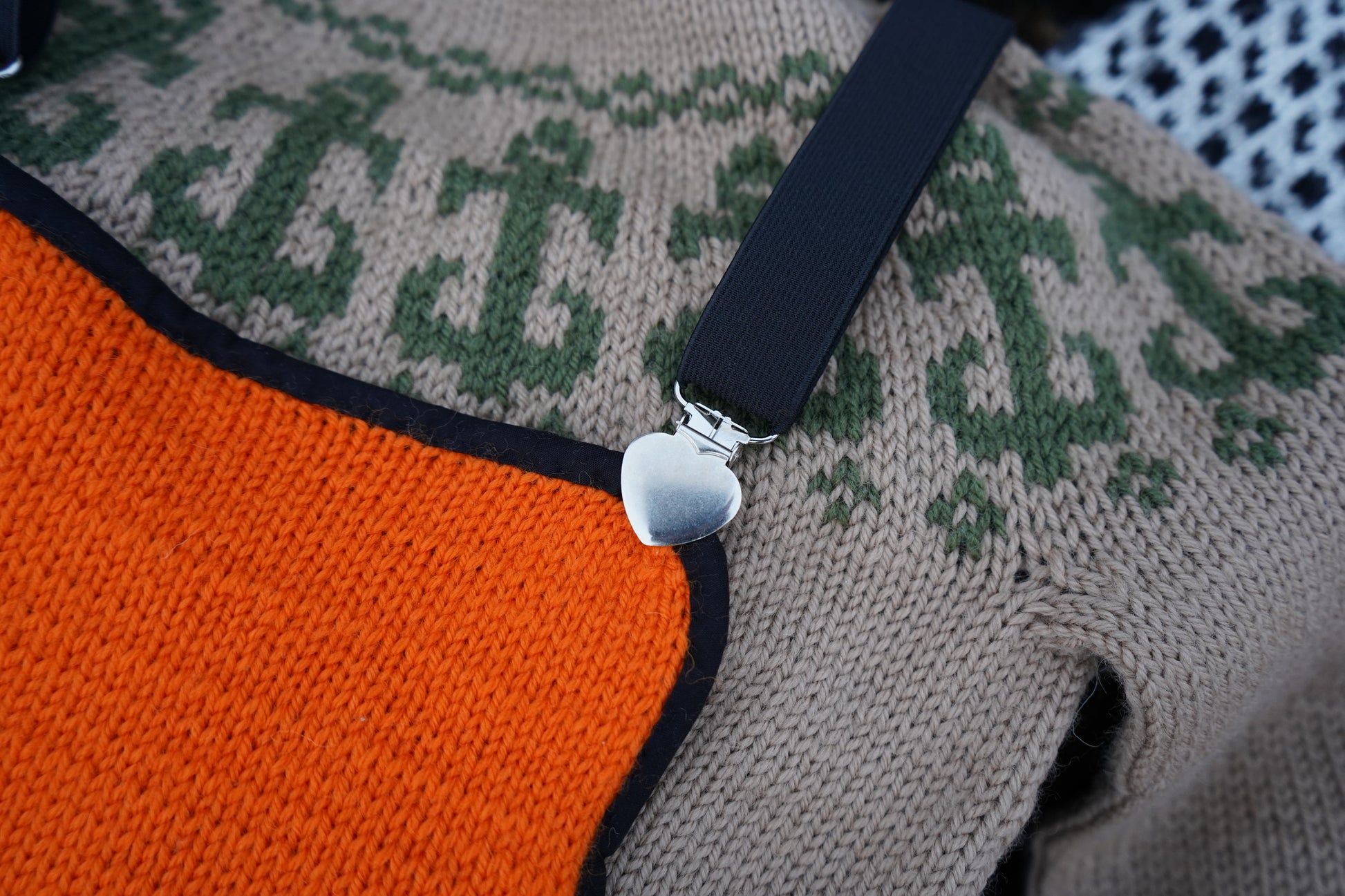 Sagas oljebukse er en enkel, god bukse basert på den tradisjonelle oransje oljebuksen. Buksen strikkes i supreme wool, Peer Gynt eller tilsvarende garn. Du kan strikke buksen i størrelse 1 til 6 år. I tillegg til garn trenger du seleklyper, kantbånd, sytråd og strikk som du kan bruke som seler.