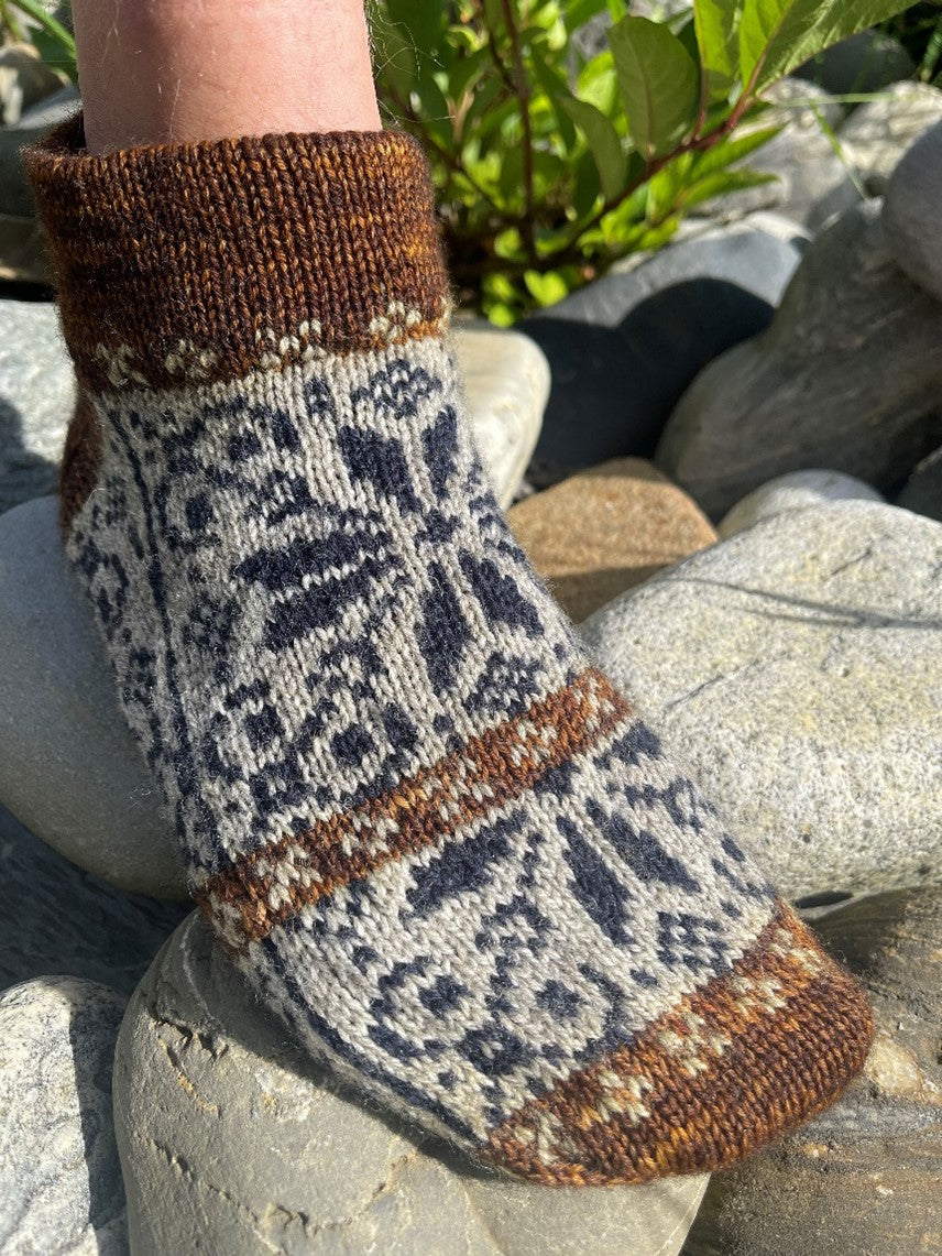 Fine ankelsokker med ett noe mere tradisjonelt utseende, disse er gøy å strikke!